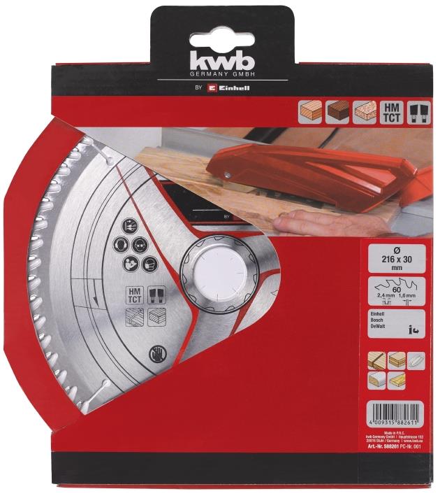 Описание Einhell Диск пильний TCT KWB до торцової пилки, 216х30 мм, 60 зубців код товару 588261