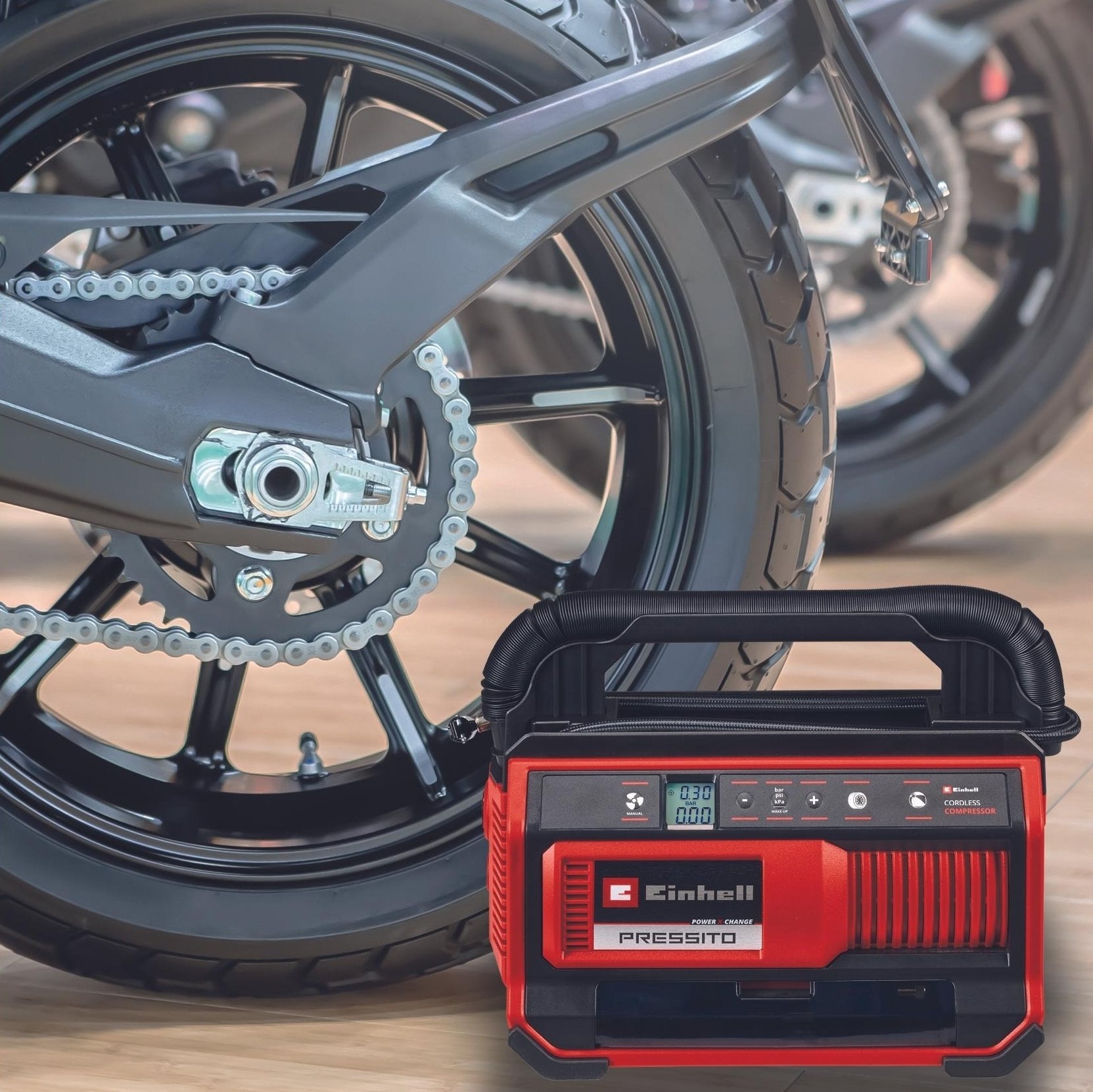 Описание Einhell Компресор повітряний PRESSITO 18/25, акумуляторний 18В PXC, 10.5бар, вис. і низьк. тиск, 2.06кг, (без АКБ і ЗП) код товару 4020420