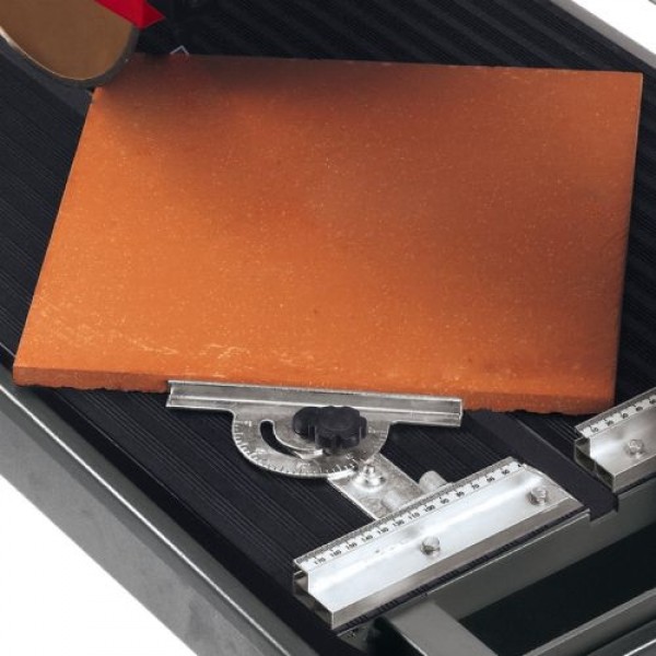 - Антиковзні накладки на ніжках, Захисний кожух, Алмазний ріжучий диск, Кутовий упор, Знімний лазерний модуль, Пристрій нахилу двигуна, Напрямна двигуна, Безступінчасто регульований обмежувач ходу, Міцна ручка, Великий робочий стіл з гумовим килимком та міц