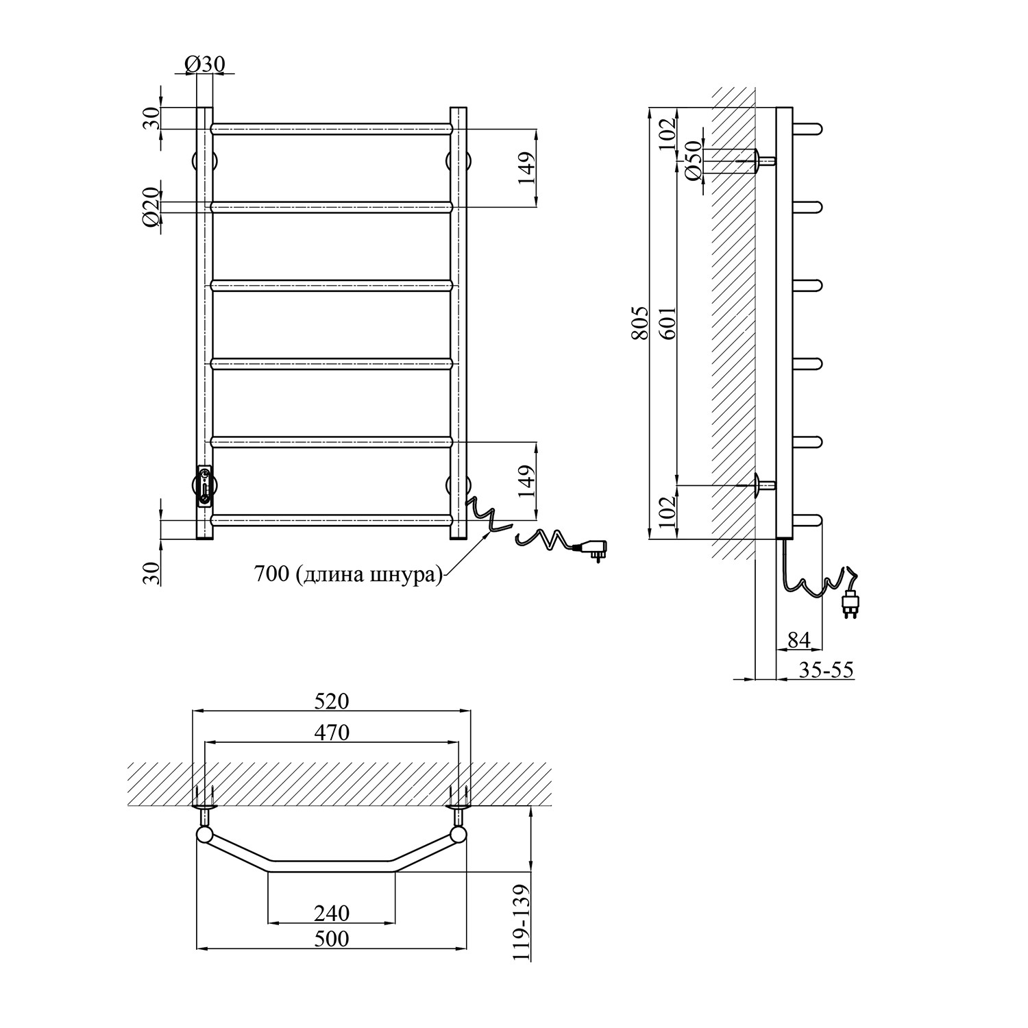 Описание Электрический полотенцесушитель Kroner Трапеция ДТ23ER 800х500/6 ER код товару CV033592