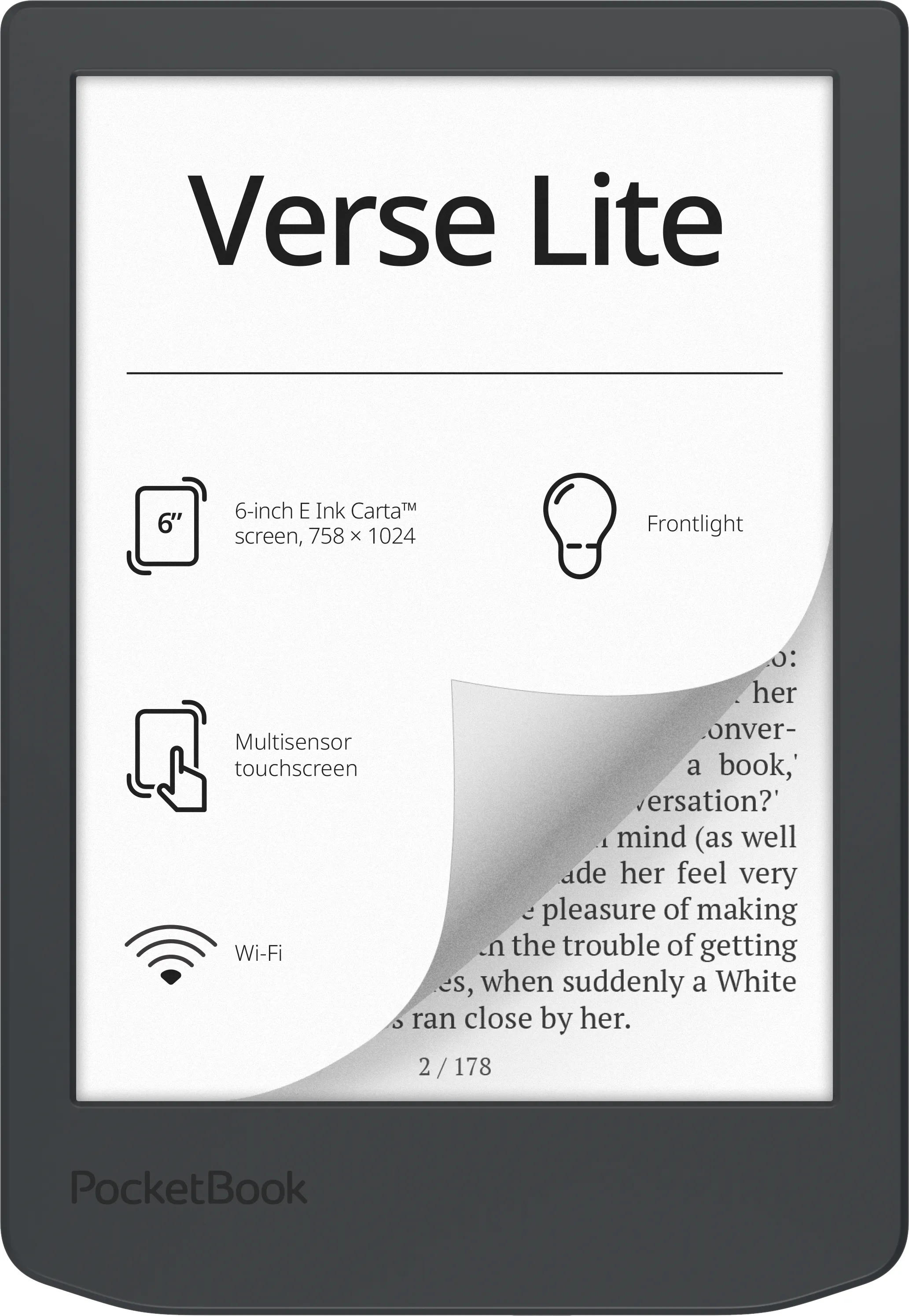Новий PocketBook Verse Lite – це рідер базового рівня для комфортного й безпечного для очей електронного читання за доступною ціною. 6-дюймовий сенсорний екран E Ink Carta з підсвічуванням, Wi-Fi, хмарні сервіси, підтримка 25 книжкових і графічних форматів, вбудовані словники – усе це робить Verse Lite відмінним рідером початкового рівня.