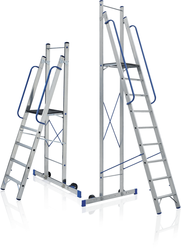 Колеса, розташовані внизу опорної секції, полегшують транспортування драбини