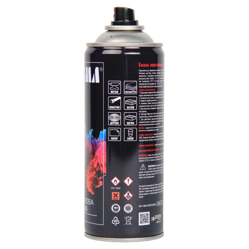 Характеристики Эмаль акриловая аэрозольная 400мл RAL 8017 темно-коричневая глянец SIGMA код товару 2736761