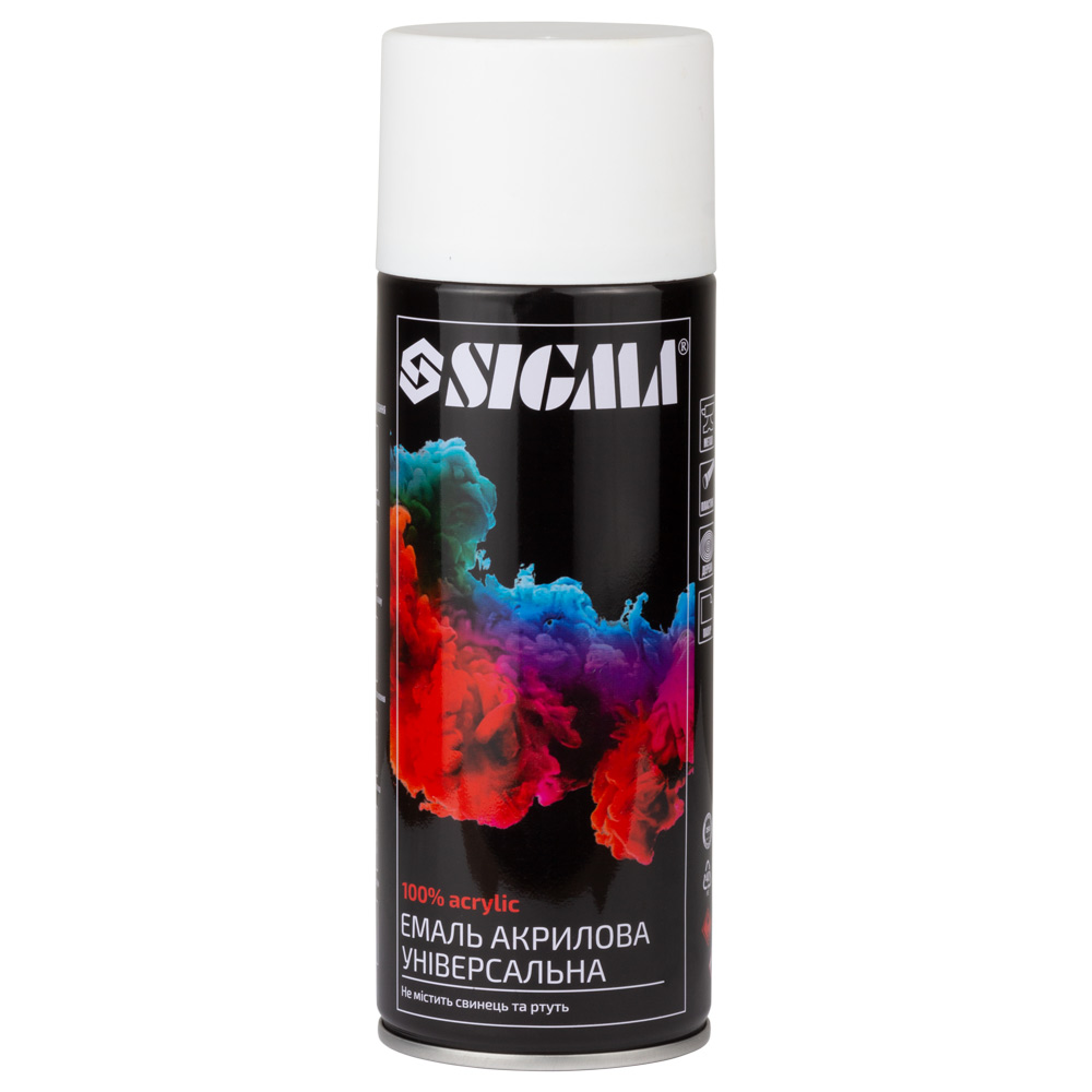 Характеристики Эмаль акриловая аэрозольная 400мл белая матовая SIGMA RAL 9010 код товару 2736621