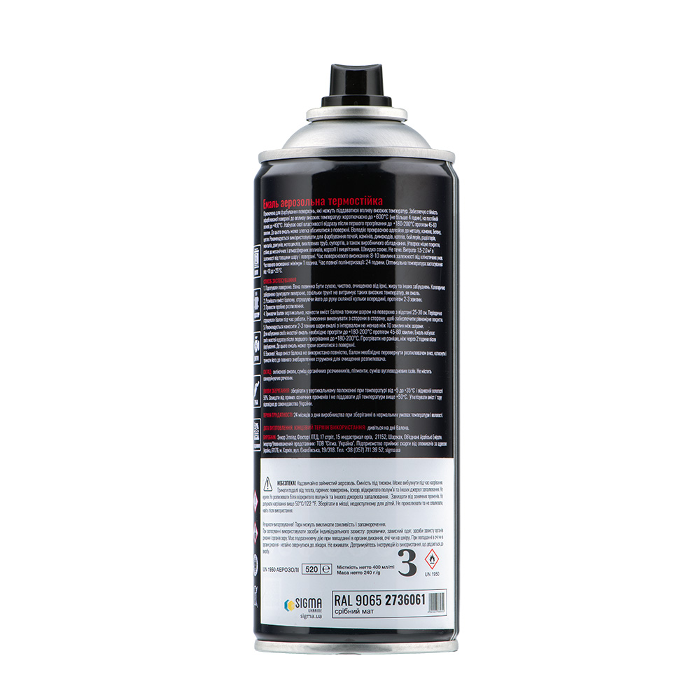 Эмаль акриловая термостойкая +600°С 400мл RAL 9065 серебристая SIGMA