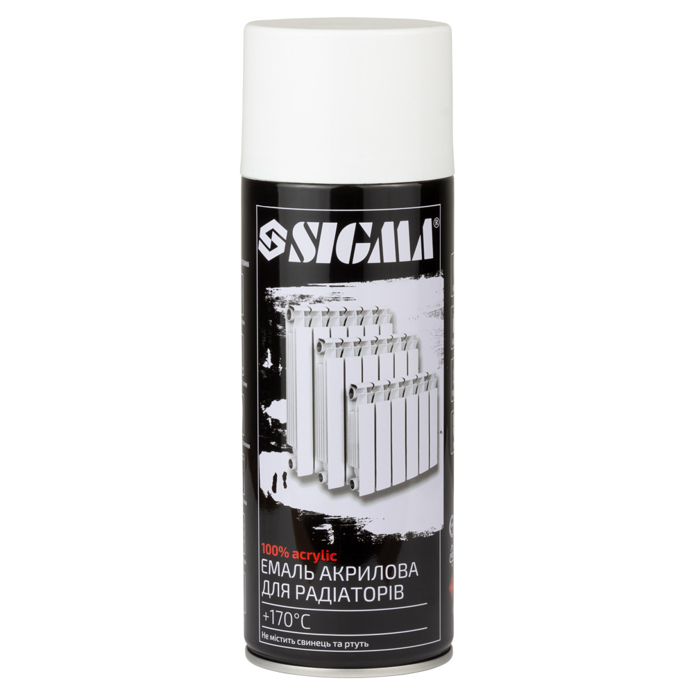 Характеристики Эмаль акриловая термостойкая для радиаторов белый глянец 400мл SIGMA код товару 2736411