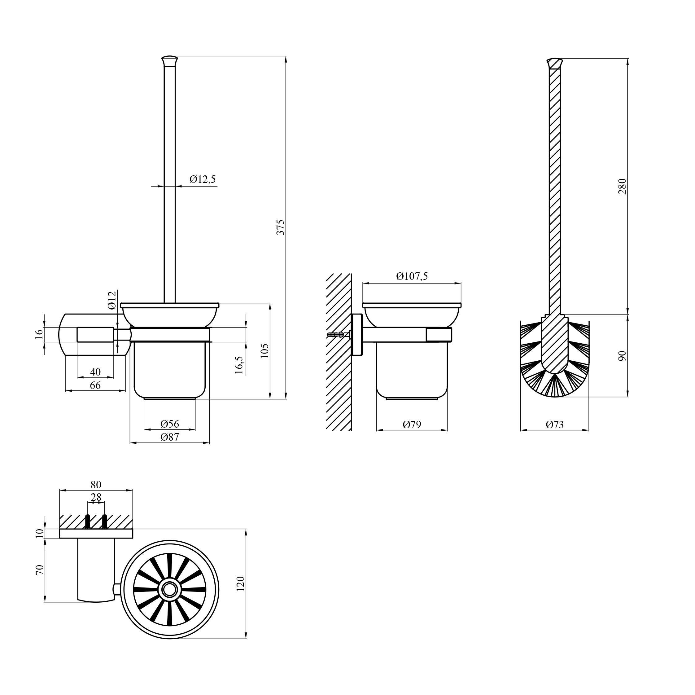Характеристики Ершик для унитаза настенный Kroner KRP Graz - GRP95613 код товару CV035544