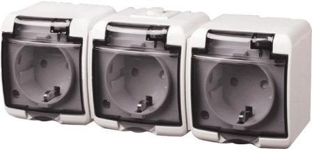 Характеристики ETI Розетка, 3хSchuko RHE-3sd (димчаста кришка, IP54) код товару 4668024