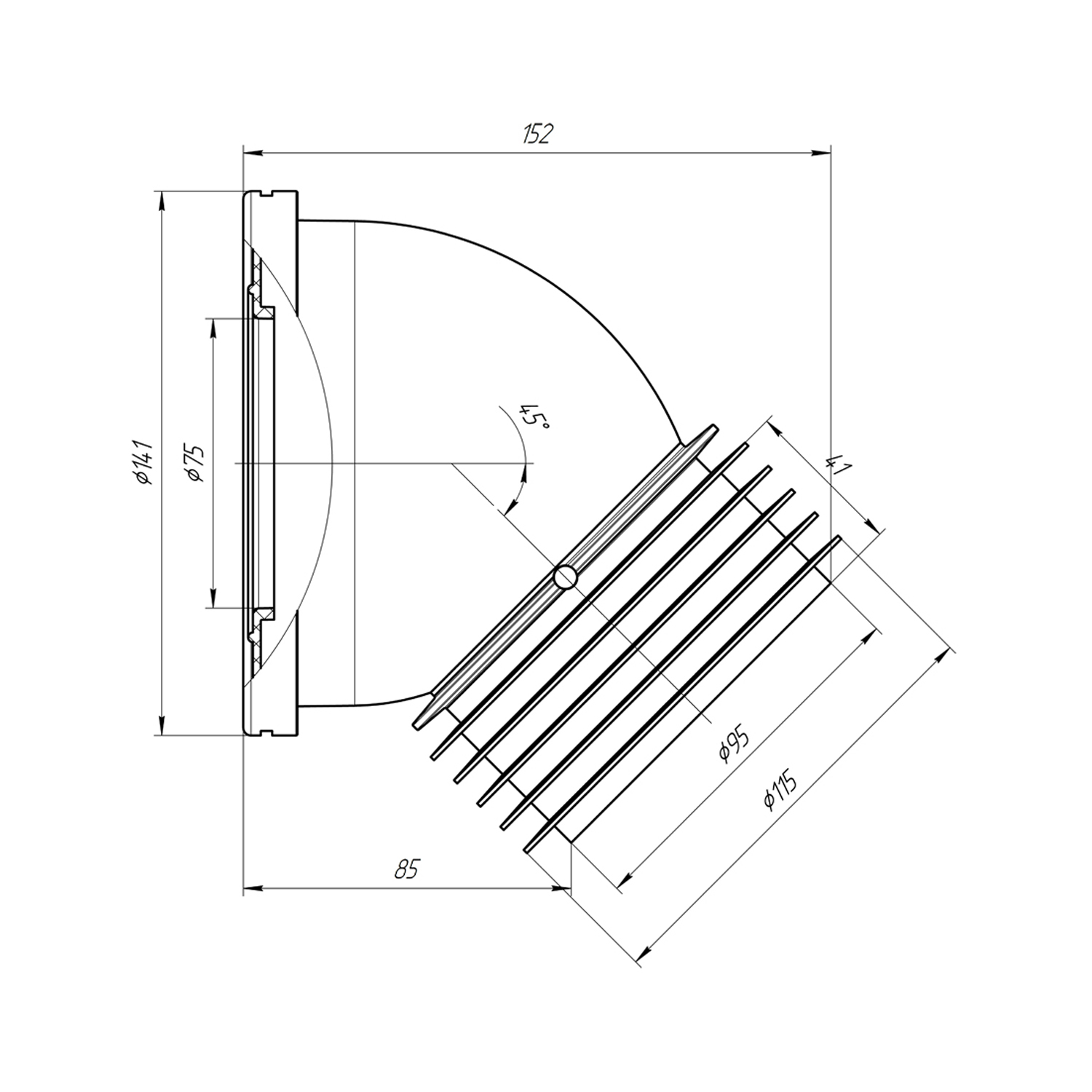 - Угол: 45°