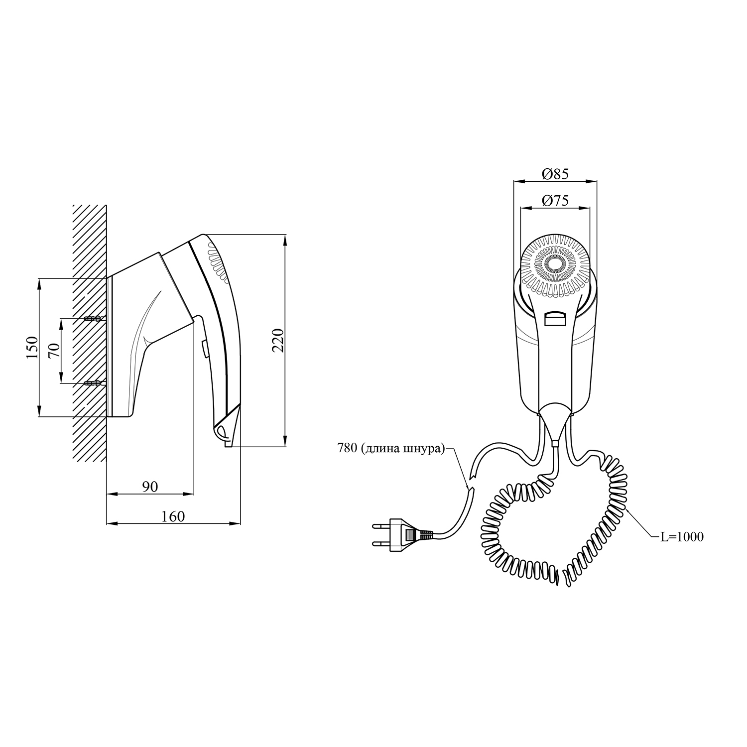 Описание Настенный фен 1100W Kroner KRM UlM - ACP0901 код товару CV022833