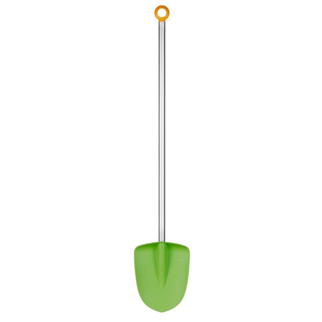 Дитячі садові інструменти не обов'язково повинні бути кволими і ламкими - принаймні, така політика Fiskars. У цієї лопати є совок з армованого волокном пластику для забезпечення міцності і стрижень з міцного анодованого алюмінію. Фірмова помаранчева петля для ручки розроблена для маленьких рук, а статус інструменту, схвалений CE, означає, що він абсолютно безпечний в маленьких руках.