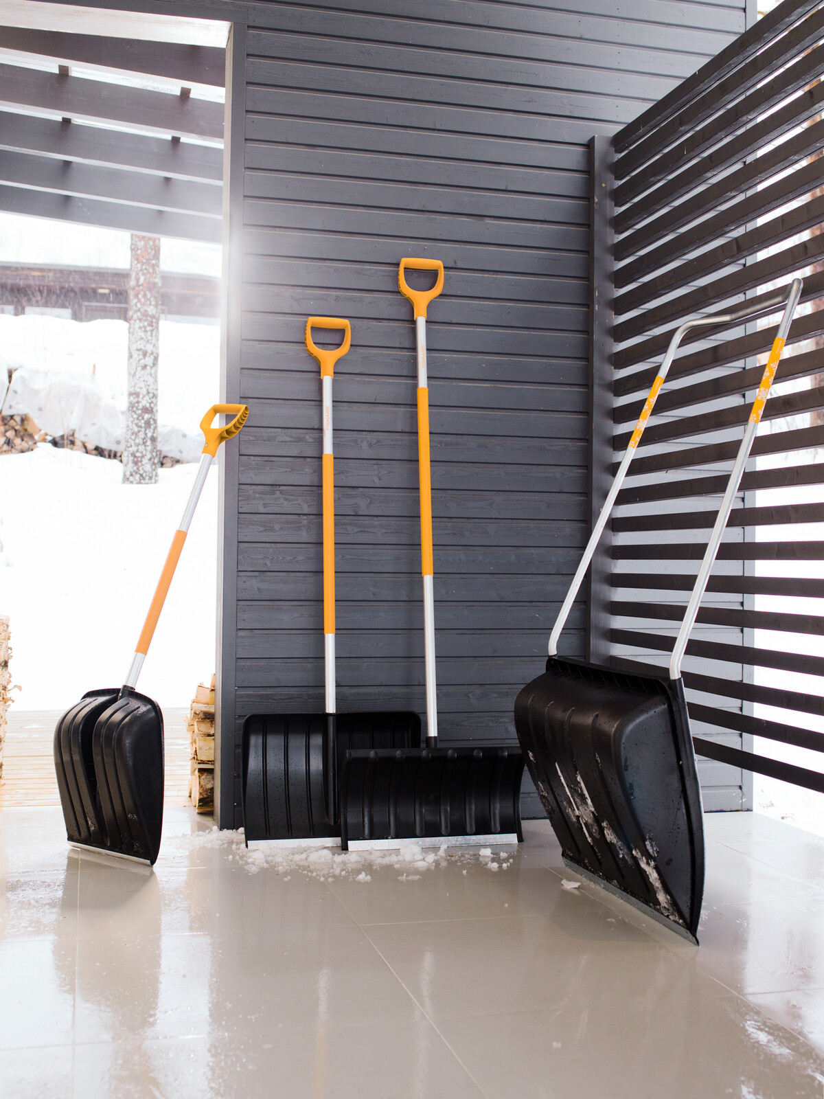 Скрепер для прибирання снігу Fiskars SnowXpert має легку алюмінієву ручку з помаранчевим пластиковим покриттям помаранчевого кольору на тактильній рукоятці. Ергономічна ручка забезпечує зручний і міцний захват для самої товстої руки в рукавичці, а лопатка з армованого поліпропіленового пластику легка, але жорстка, що дозволяє складати більш легкі шари снігу в купи. Цей інструмент, як і інші інструменти з лінійки SnowXpert, відрізняється новою запатентованою конструкцією леза, що включає жорсткий сталевий стрижень всередині, що збільшує жорсткість леза і збільшує термін служби, забезпечуючи кращу і довговічну продуктивність до трьох разів довше, ніж існуючі рішення.