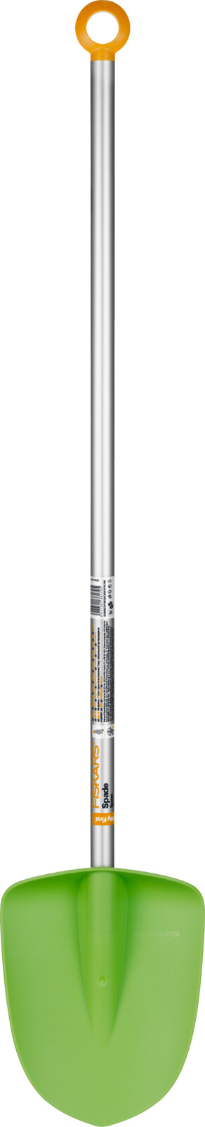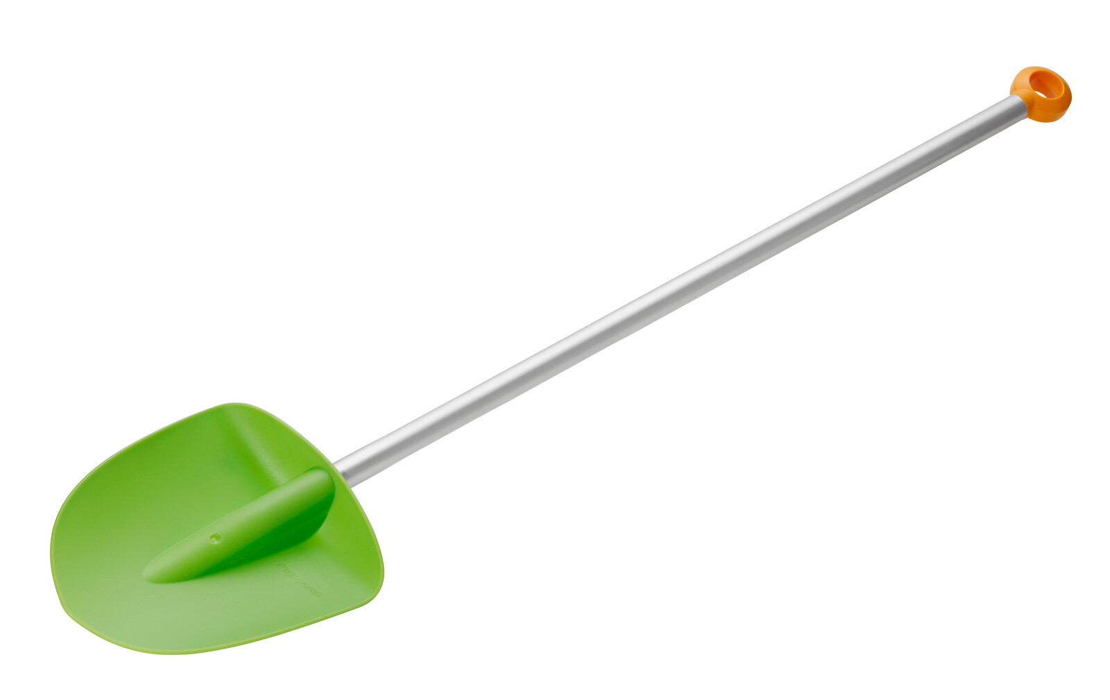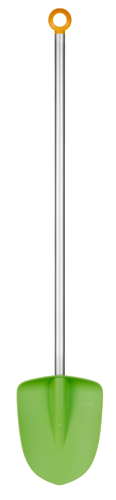 Дитячі садові інструменти не обов'язково повинні бути кволими і ламкими - принаймні, така політика Fiskars. У цієї лопати є совок з армованого волокном пластику для забезпечення міцності і стрижень з міцного анодованого алюмінію. Фірмова помаранчева петля для ручки розроблена для маленьких рук, а статус інструменту, схвалений CE, означає, що він абсолютно безпечний в маленьких руках.