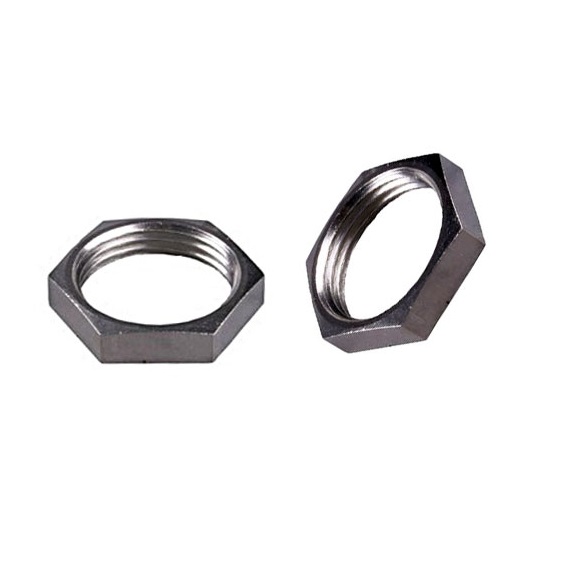 DIN 431 Гайка трубна низька шестигранна, форма В (з односторонньою фаскою), з трубним дюймовим різьбленням згідно ISO 228-1, розмір різьблення від 1/8 до 2 дюймів.