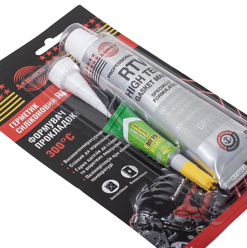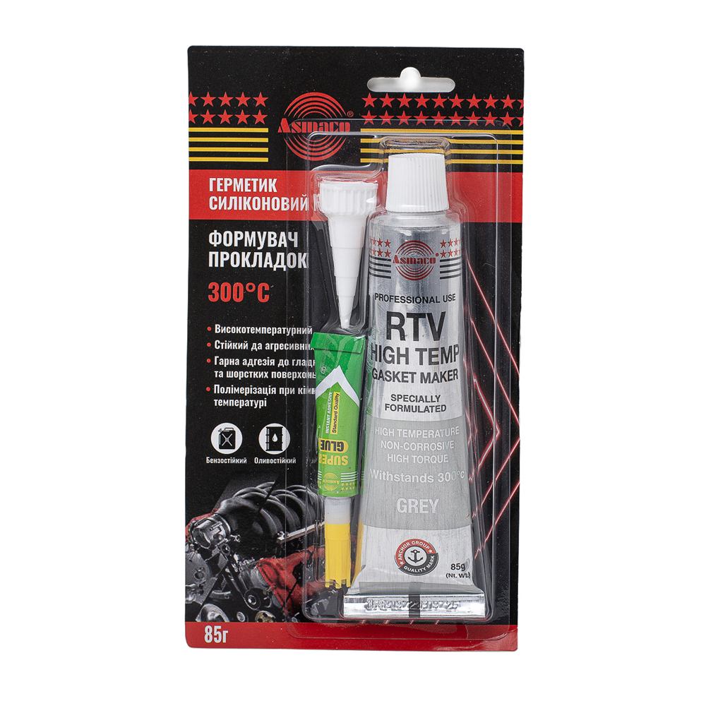 Силиконовый герметик RTV, высокотемпературный +300°C, серый, 85г код товару 6371241 Asmaco, King Tony