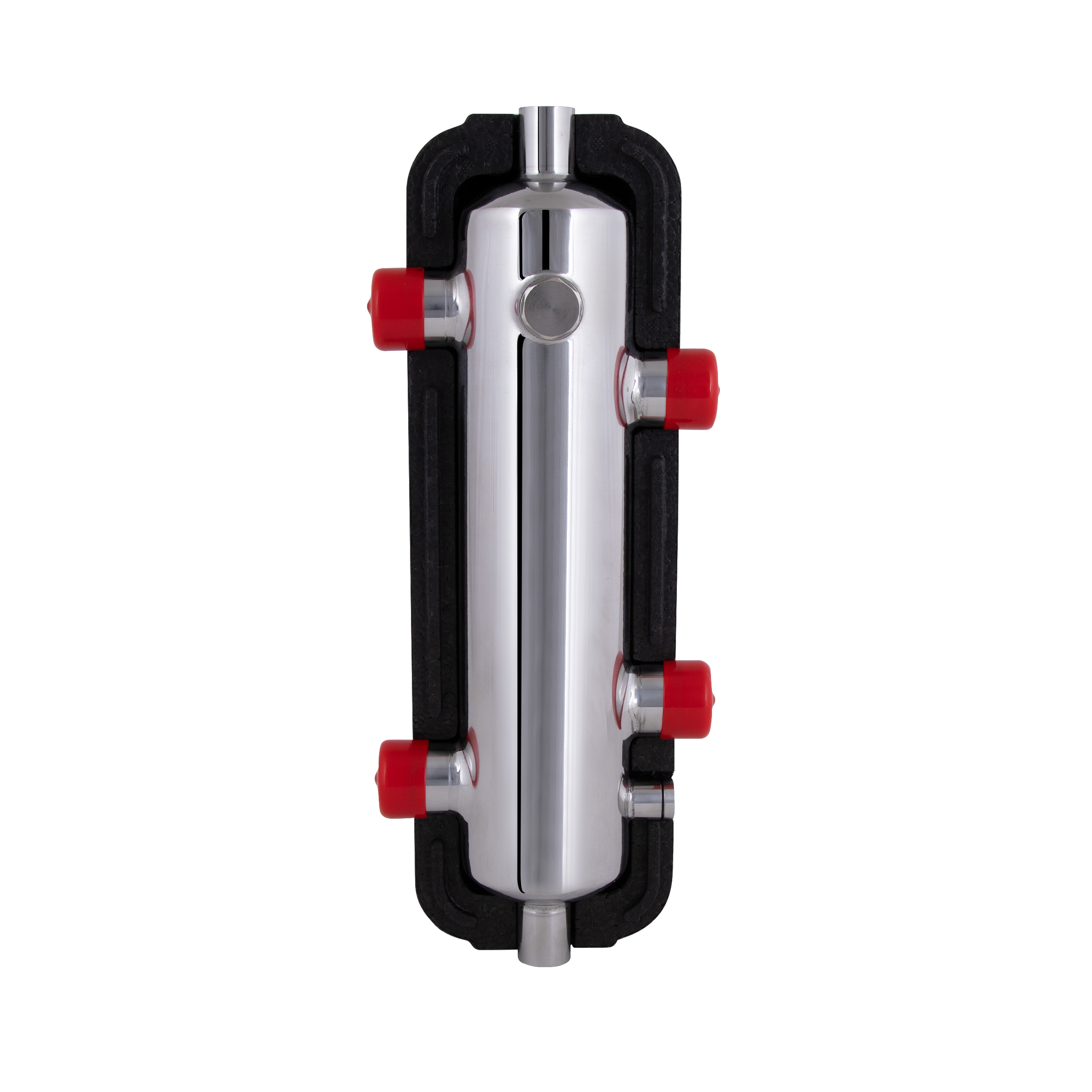 Гидрострелка Thermo Alliance серии Forte 1" 50 кВт - устройство, используемое для разделения и увязки первичного (котлового) и вторичного контура системы отопления. Основные патрубки подключения — с наружной резьбой размером 1 дюйм. Изделие снабжено двумя патрубками для подсоединения воздухоотводчика и сливного крана. Установка гидравлическая стрелки продлевает срок службы котельного оборудования. В комплектацию входит теплоизоляционный кожух, который легко снять и надеть вновь после монтажа.
