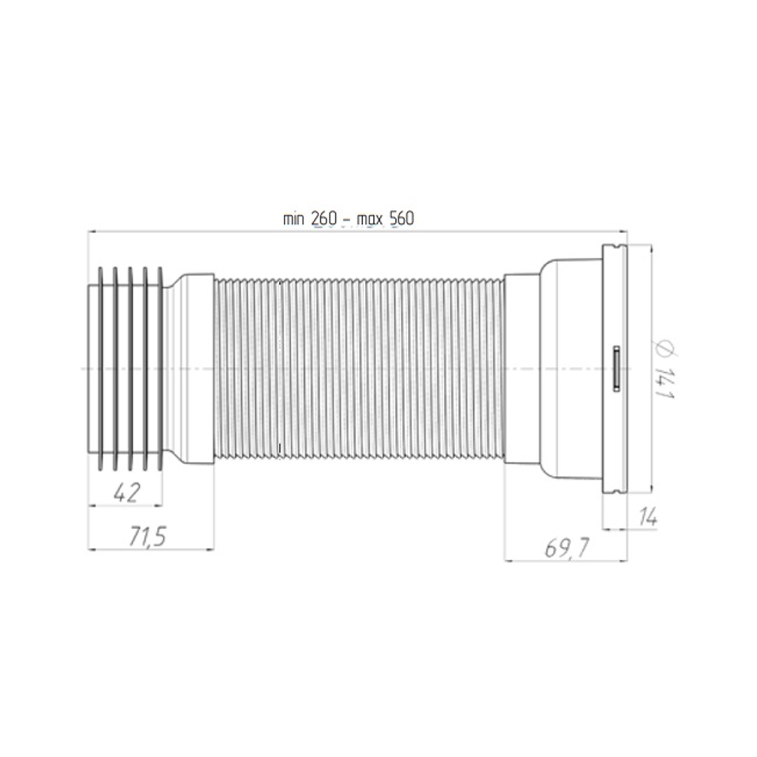Характеристики Гофра для унитаза ANIplast D-110 мм, 230-500 мм, армированная код товару CV010992