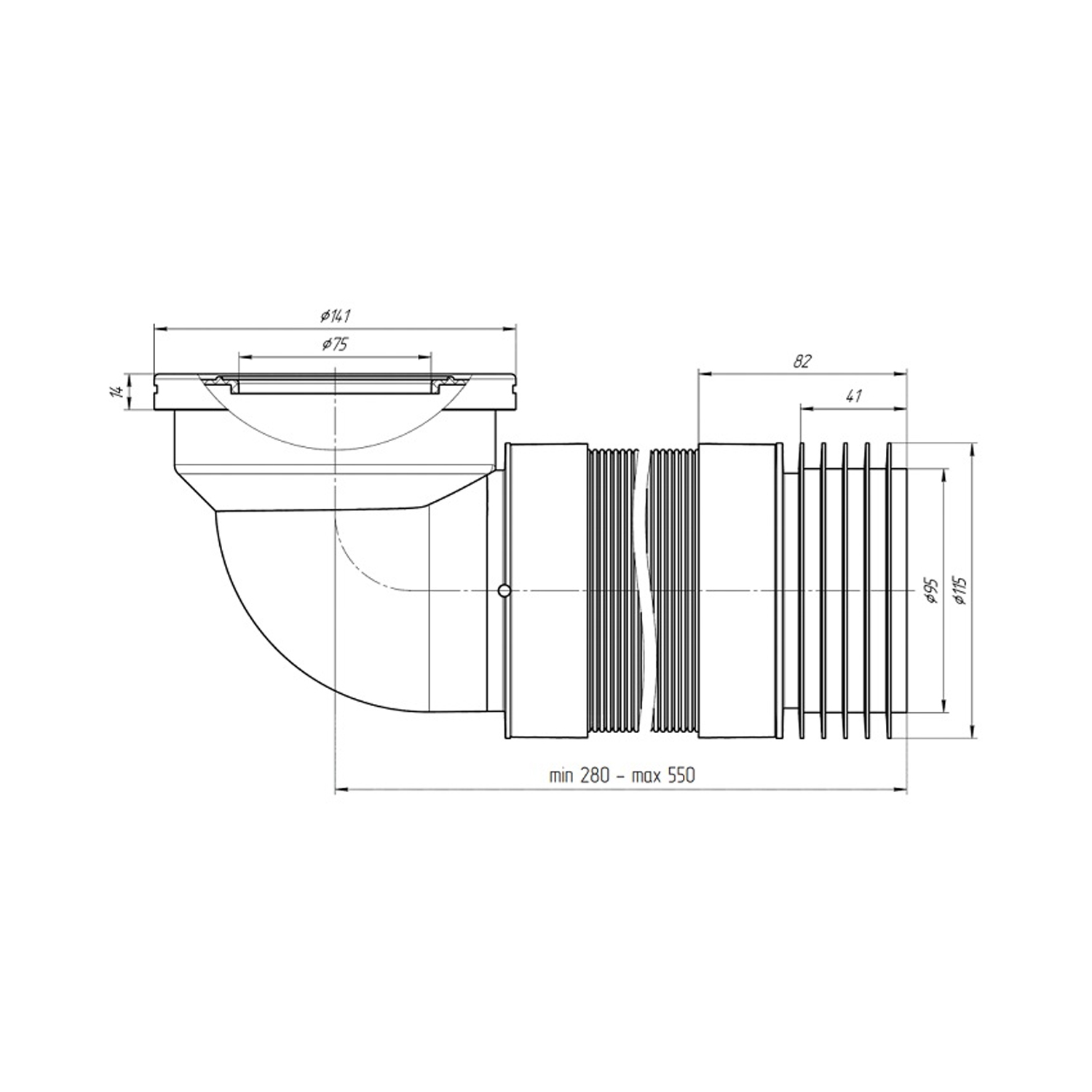 Характеристики Гофра для унитаза ANIplast D-110 мм 265-450 мм код товару CV024746