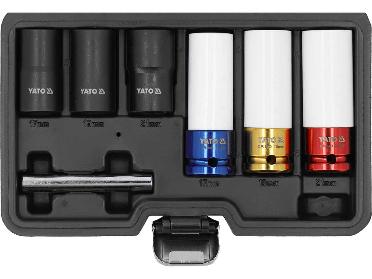Описание Головки торцеві ударні з екстрактором YATO квадрат- 1/2", М17,19,21мм Cr-Mo, для алюм. дисків 7 Од. код товару YT-10559