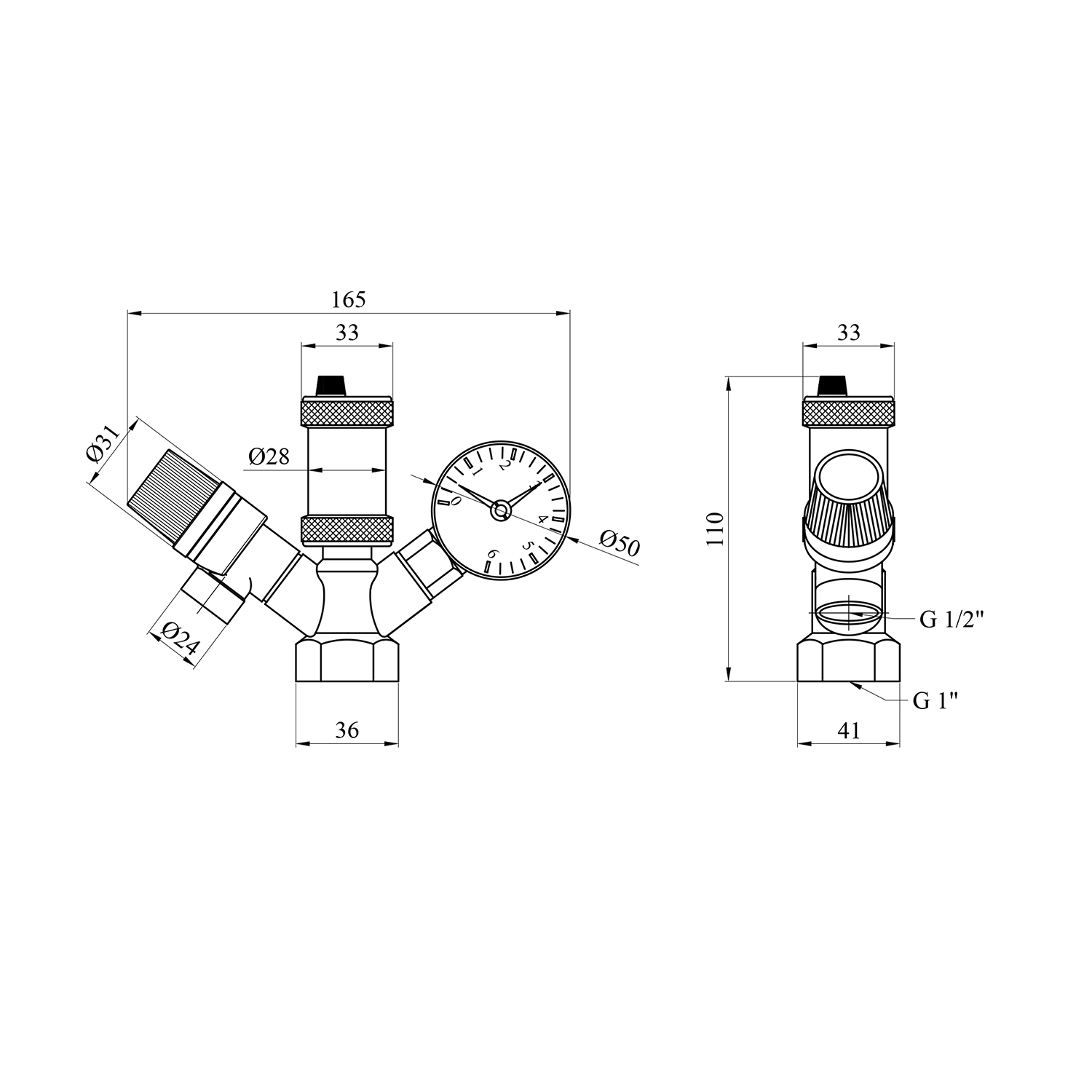 - Диапазон шкалы манометра: 0-4 бар. Подключение манометра и воздухоотводчика: 3/8". Подключение предохранительного клапана: 1/2". Давление износа клапана группы безопасности: 3 бар.