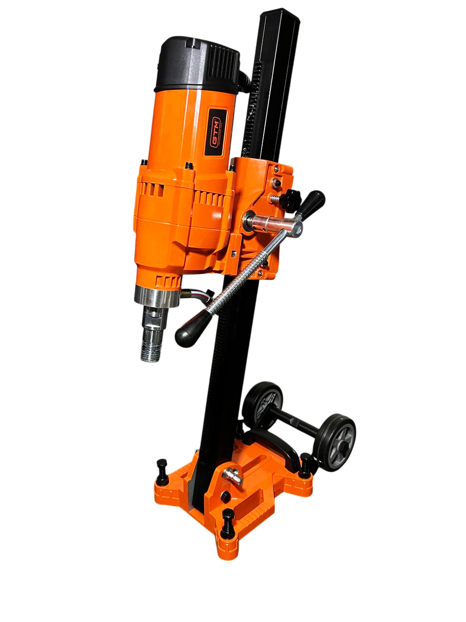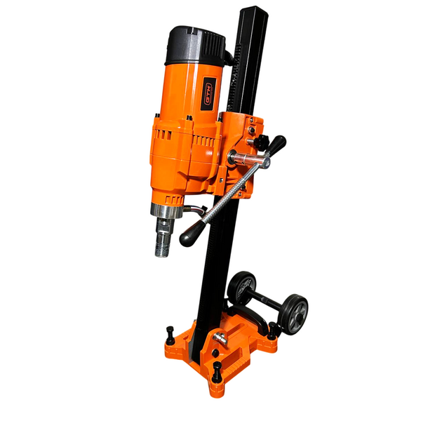 Бурильна установка GTM BMK-260AC/45 - електрообладнання для мокрого буріння отворів в бетонних, кам'яних, цегляних і гранітних поверхнях за допомогою алмазних коронок. Представлена модель фіксується на спеціальній стійці (станині), яка входить в стандартну комплектацію. Підключається до системи водяного охолодження і дозволяє проробляти отвори діаметром до 260 мм. Алмазна коронка кріпиться безпосередньо до шпинделя без використання патрона.