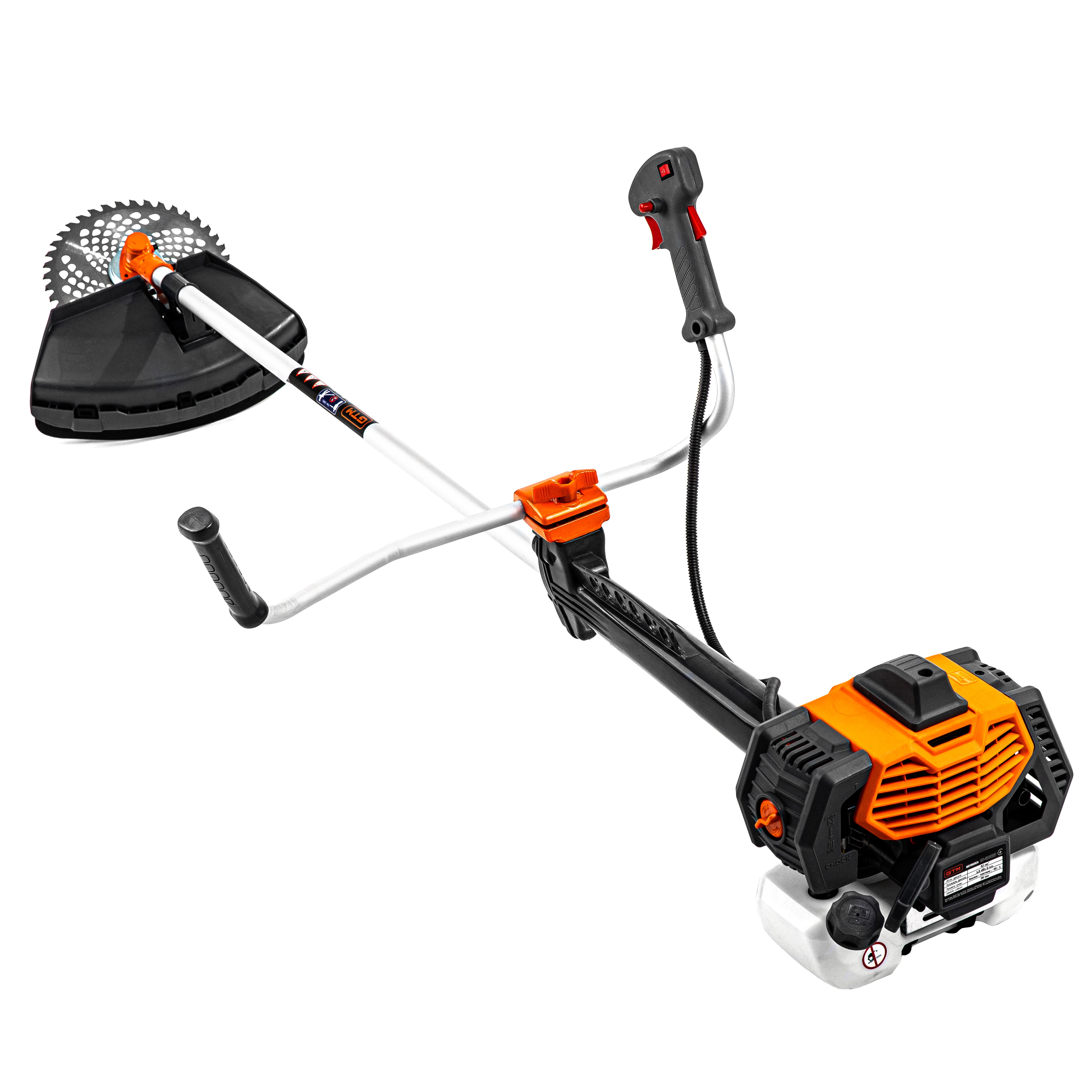 GTM CN520FAV - бензинова мотокоса (кущоріз) професійного класу, призначена для косіння трави, заростей і кущів діаметром до 25 мм на дачі, садовій ділянці або сільській місцевості. Коса оснащена 2-тактним бензиновим двигуном потужністю 1.5 кВт (2 к. с.) з підвищеним крутним моментом. Як паливо використовується суміш бензину з мастилом у пропорції 40:1 (25 мл мастила на 1 л бензину).