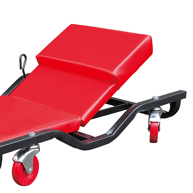 Лежак автослюсаря підкатний з відкидним підголовником GTM TRH6455 має посилений сталевий каркас з квадратного металевого профілю, покриття - порошкове. Матеріал поверхні - мастилостійкий вініл, а товста пінопластова прокладка забезпечує комфорт майстра під час роботи.