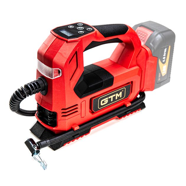 GTM AСC18/26 - компактний і легкий компресор, що призначений для накачування коліс легкових автомобілів або позашляховиків. Це мобільний високопродуктивний компресор без ресивера. Компресор живиться від стандартних акумуляторів GTM 18В або від прикурювача автомобіля. Під час роботи компресор видає 26 л/хв з робочим тиском до 6.8 бара. Компресор поставляється з набором аксесуарів для повноцінної роботи.