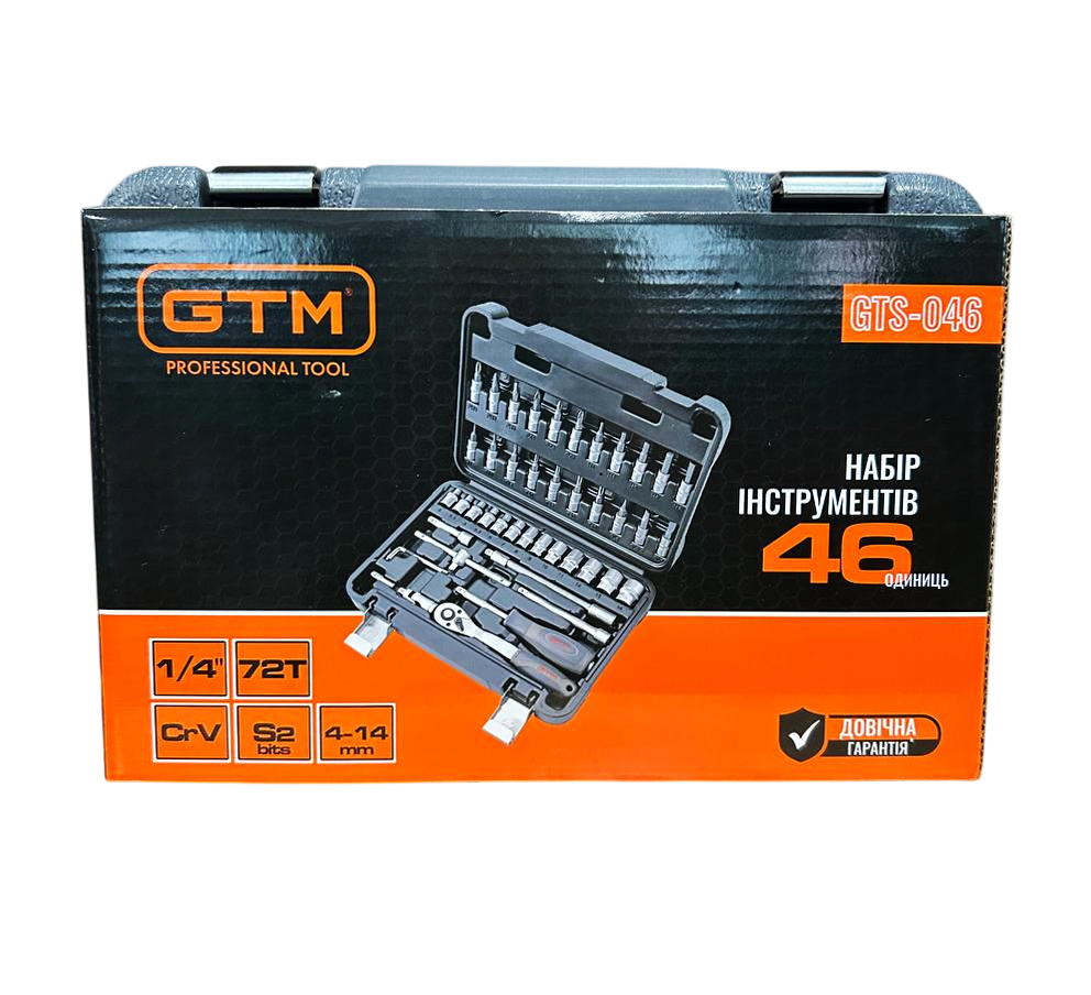 Описание GTM Набір інструменту 46од. 1/4" 4-14мм пластик. кейс код товару GTS-046