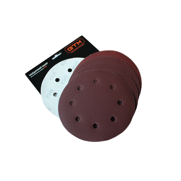 Описание GTM Шліфкруг з отв. 180мм Р-120, липучка, (5шт.) для шліфмаш. SZS-180L (жираф) код товару SZS180L P120