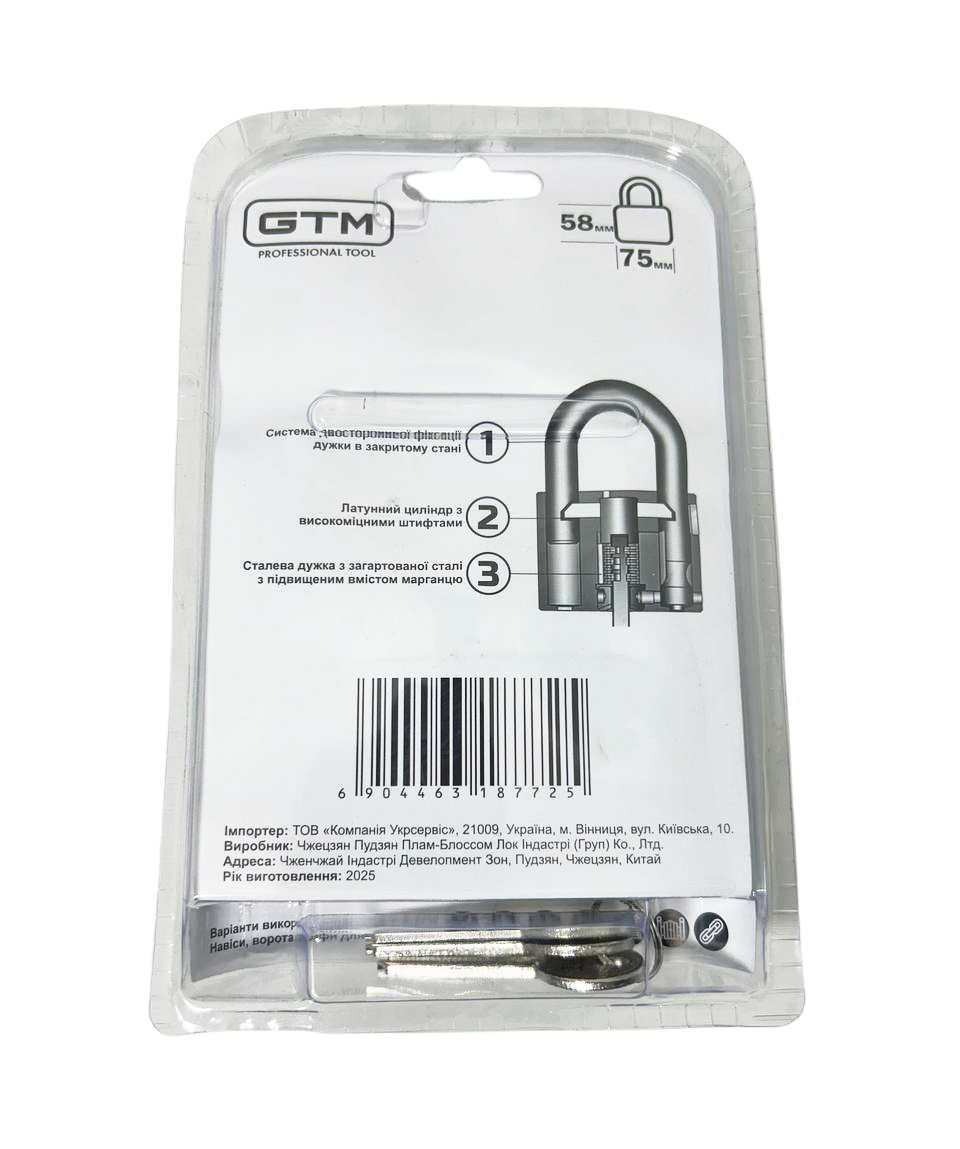 Описание GTM Замок навісний 75мм GTM BCG2975 код товару BCG2975
