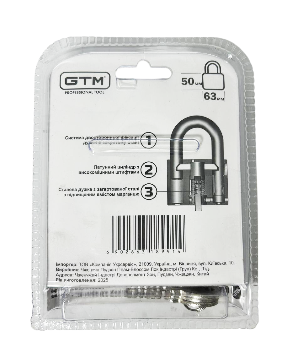 Навісний замок GTM BX0163 має стандартний розмір 63 мм.