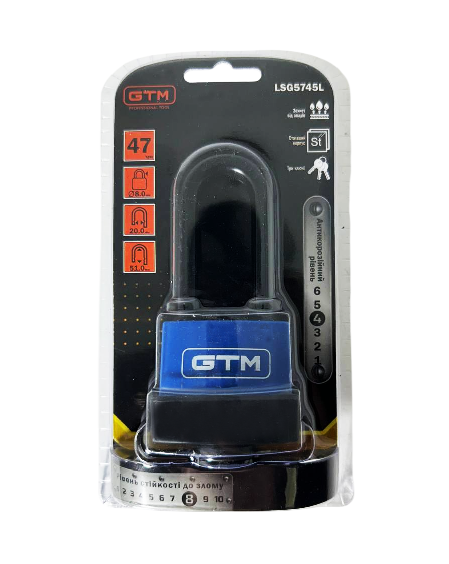 Описание GTM Замок навісний з захистом від вологи 45мм GTM LSG5745L код товару LSG5745L