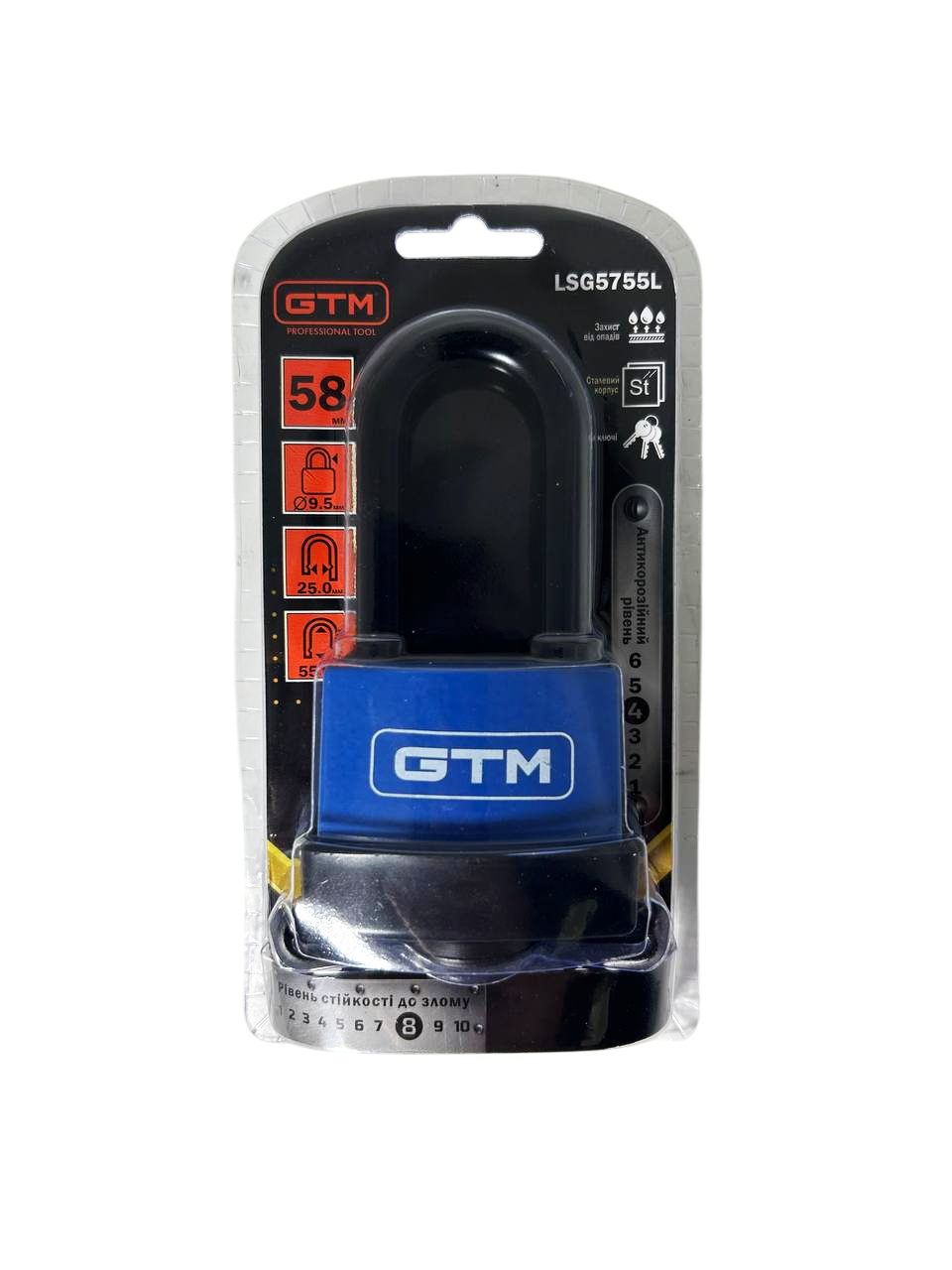 Опис навісного замка GTM LS5755L із захистом від вологи 55 мм