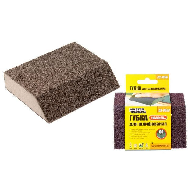 Описание Шлифовальная губка MASTERTOOL ТРАПЕЦИЯ Р60 110х90х25 мм код товару 08-0606
