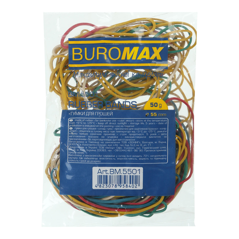 Гумки для грошей від BUROMAX призначені для перетягування грошових купюр. Крім цього, ця продукція використовується для з'єднання упаковок медикаментів в аптеках та на виробництві, фасування канцелярських інструментів, дрібної торгівлі, при виготовленні побутових приладів, а також широко використовуються для різних потреб у домашніх умовах.