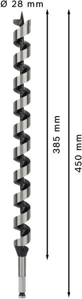 Характеристики Гвинтові свердла по дереву BOSCH, d 11,1 мм, 28 x 385 мм код товару 2608597650