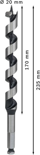 Характеристики Сверла по дереву, шестигранный хвостовик 20x170x235 мм, d 11,1 мм BOSCH код товару 2608597632