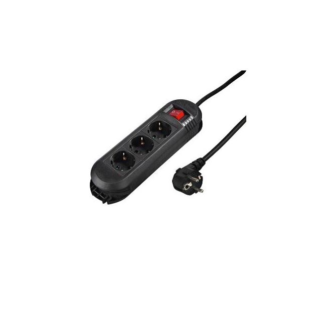 Подовжувач мережевий НАМА "Colour" на 3 розеток чорного кольору. Є вимикач з підсвічуванням. Розетки розгорнуті під кутом 45°. З захистом від доступу дітей.