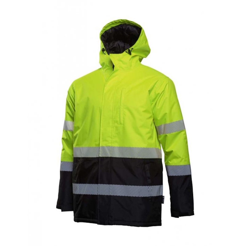 Характеристикиткань: полиэстер OXFORD 300D с PU-покрытием;утеплитель: 180 г/м²;соответствие стандартам: EN ISO 20471 (класс 2), EN 343 (класс 3/1), EN 14058 (защита от холода до -5°C);карманы:– нагрудный карман на молнии,– внутренний нагрудный карман с клапаном на липучке,– 2 нижних кармана;эластичные манжеты с отверстием для большого пальца создают дополнительный барьер от холода;основная застёжка: двусторонняя молния;капюшон: утеплённый;регулировка манжет липучкой;внутренние эластичные манжеты с отверстием для большого пальца;светоотражающие полосы с принтом;удлинённая спинка;современный крой.