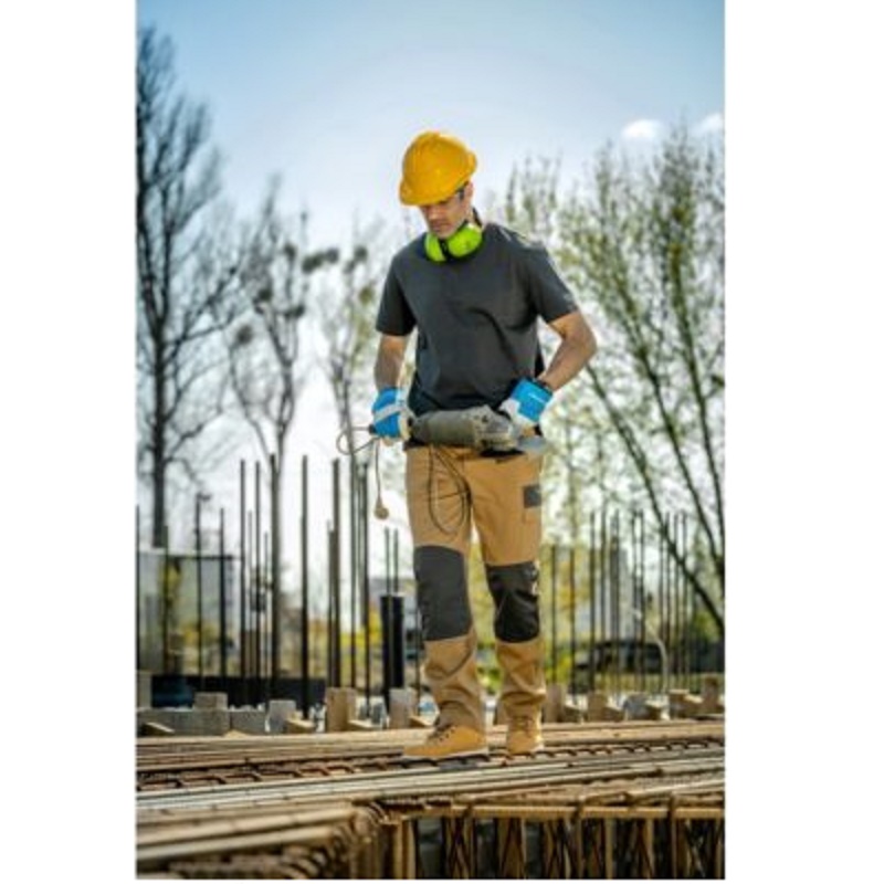 Тщательно изготовленные мужские,рабочие брюки бежевого цвета. Высококачественный материал и крепкое переплетение обеспечивают прочность и высокий комфорт использования. Первый класс индивидуальной защиты. Штаны соответствуют стандарту, который определяет уровень эргономики, размерную маркировку и безвредность — EN ISO 340.