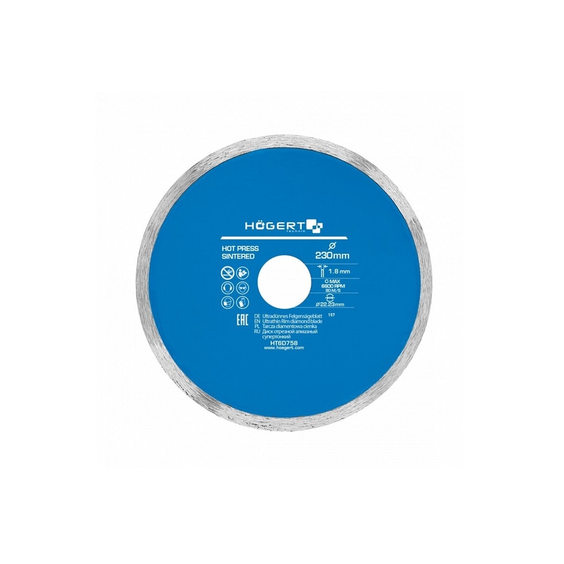 Описание Алмазный диск супертонкий 230x1,8x22,3 мм HOEGERT HT6D758 код товару HT6D758