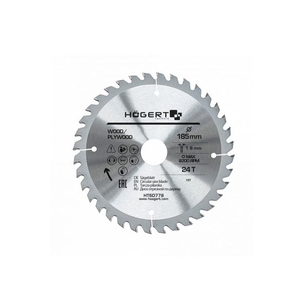 Описание Диск пильный по дереву 185x24T, Mn65 HOEGERT HT6D778 код товару HT6D778