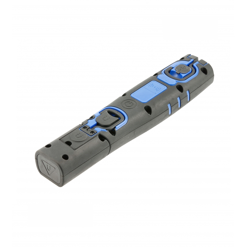 Незаменимый инструмент для освещения труднодоступных мест для каждого механика, электрика или мастера-любителя.Он оснащен мощными и энергосберегающими светодиодами с различными характеристиками освещения. SMD-светодиоды светят более рассеянно, создавая впечатление света от разных источников без бликов. COB-светодиоды дают более сфокусированный свет, четко излучаемый узким лучом из одной точки.Четыре режима настройки света позволяют идеально подобрать освещение для различных задач.Поворот головки на 180 градусов позволяет настраивать направление света в соответствии с текущими потребностями.Магниты на обоих концах корпуса позволяют крепить фонарь к металлическим поверхностям, освобождая руки для работы.Кроме того, два складных крючка на обоих концах фонаря позволяют подвешивать его, например, на проводе, ветке или другом предмете.Светодиодный индикатор показывает уровень заряда батареи.Фонарь работает от высококачественных емких аккумуляторов, заряжаемых через порт USB-C. Прочный корпус из поликарбоната защищает светильник от механических повреждений, что подтверждено сертификатом IK.Светильник устойчив к проникновению воды и пыли согласно классу защиты IP.Поверхность корпуса устойчива к загрязнениям и позволяет надежно удерживать светильник в руке.Легкая и компактная конструкция светильника обеспечивает удобство переноски и хранения.