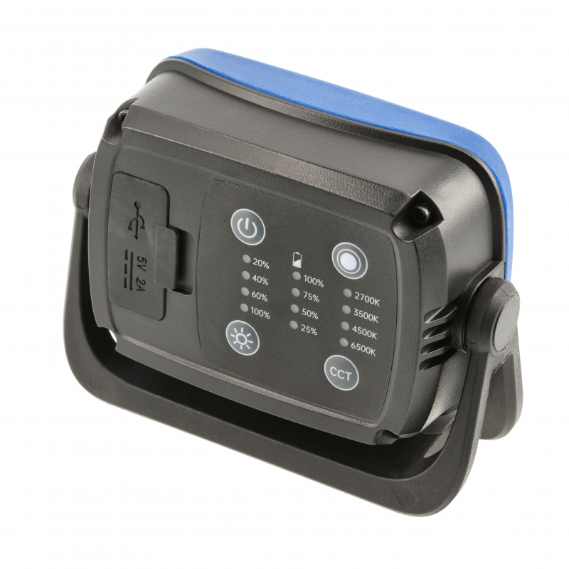 Портативный рабочий светильник, отличающийся превосходным качеством света, высокой устойчивостью к повреждениям и долговечностью.Подходит для работы в самых сложных условиях – на стройке, в отделочных работах, ремонтных мастерских и на открытом воздухе.Качественные светодиоды светят с разной интенсивностью в 4 выбранных цветах + красный. Это позволяет создавать 18 уникальных режимов освещения.Максимальное расстояние освещения объектов составляет 60 м.Фонарь питается от мощного аккумулятора, обеспечивающего непрерывную работу до 17 часов.Корпус из алюминия с защитой от ударов резиной и АБС-пластиком, имеющий высокий класс защиты IK07, гарантирует полную устойчивость к ударам силой 2 Дж, что эквивалентно падению предмета массой 500 г с высоты 40 см.Кроме того, корпус защищен от брызг воды по стандарту IPX4, что позволяет безопасно использовать его под небольшим дождем. Работает в широком диапазоне температур: на улице зимой и в жару от -20°C до +40°C.Ручка с наклоном на 360° позволяет направлять свет в любом направлении.Мощный магнит и складной крюк для подвешивания позволяют закрепить прожектор в любом месте, освободив руки для работы.Гнездо с резьбой 1/4″ позволяет установить прожектор на штатив.При необходимости прожектор может работать как внешний аккумулятор и питать другие устройства через порты Type A и Type C.