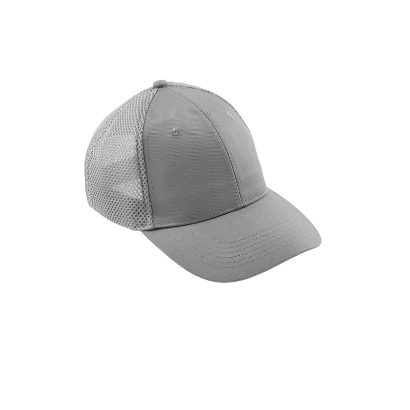 Классическая светло-серая кепка с характерной шестисегментной конструкцией. Два первых сегмента изготовлены из ткани, а остальные четыре сегмента из сеточки, которая защищает голову во время жары. Сеточка очень мягкая, что способствует потокам воздуха. Вверху находится декоративная пуговица. Кепка дает возможность индивидуальной регулировки размера и точной посадки на голову благодаря удобной застежке на липучке.