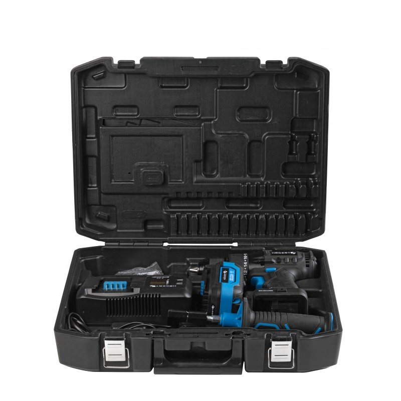 Описание HOEGERT Набор Аккумуляторная бесщеточная дрель-шуруповерт + аккумулятор + зарядная станция + кейс код товару HT2E246-B14DD