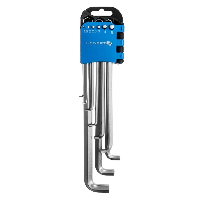 Описание HOEGERT Набор Г-образных шестигранных ключей, 9 шт, CrV, удлиненные код товару HT1W807
