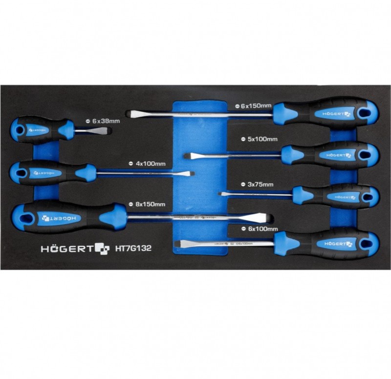 Описание Набор плоских отверток 7 шт. с ложементом EVA HOEGERT HT7G132 код товару HT7G132