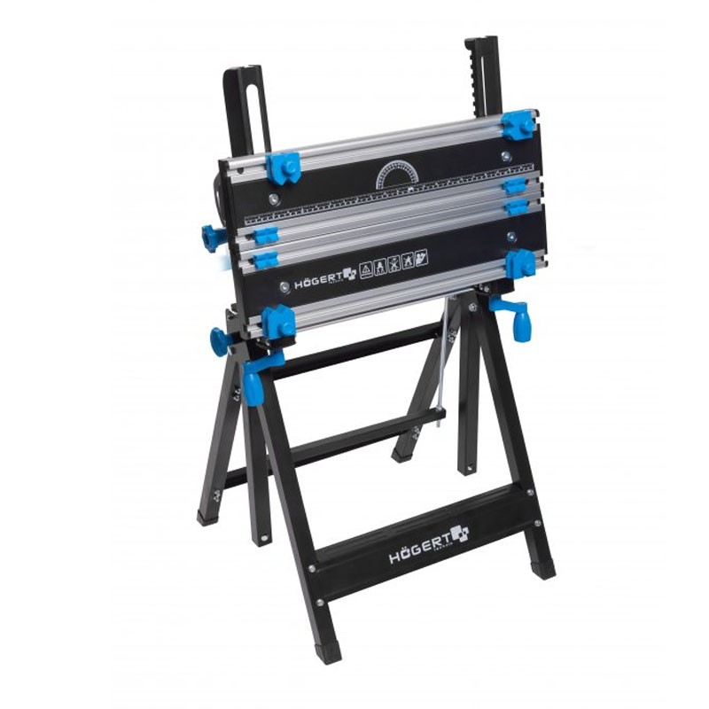 Описание товараРегулируемый металлический верстак обеспечивает универсальность в работе.Регулировка угла наклона рабочей поверхности в 4-х положениях обеспечивает эргономичность и оптимальные условия работы.7-уровневая регулировка высоты с помощью ножки позволяет адаптировать инструмент к различным потребностям.Плавная регулировка положения опорных балок увеличивает зажимную поверхность. Зажим можно отрегулировать с учетом неровных краев заготовки.8 подвижных зажимных губок обеспечивают дополнительную надежную фиксацию заготовок различной формы, таких как трубы, штифты, блоки, пластины.Максимальная нагрузка на стол 100 кг позволяет работать с тяжелыми заготовками.Складная конструкция придает инструменту компактные размеры для удобного хранения и транспортировки.Прочная сталь и устойчивый и легкий алюминий, из которых изготовлены столешница и конструкция, гарантируют устойчивость и долговечность инструмента.Нескользящие резиновые ножки обеспечивают устойчивость при работе.Измерение длины и угла, нанесенное на планку, облегчает работу при резке и сборке заготовок.ХарактеристикиРазмер: 60 (Ш) x 57 (Д) x 77-107 (В) см.Диапазон высоты: 76-106 см.Диапазон наклона верхней части: 0-80°.Диапазон расстояния между балками: 0-17,5 см.Максимальная грузоподъемность: 100 кг.Материал: сталь и алюминий.Вес: 12,5 кг.